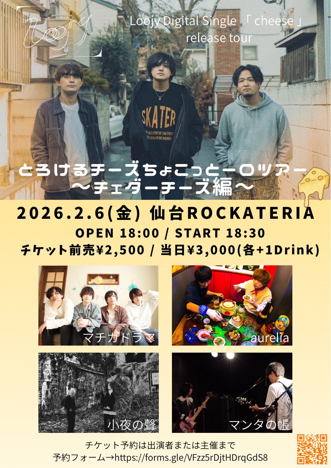 2/6 Fri Loojy Digital Single 「 cheese 」 release tourとろけるチーズちょこっと一口ツアー〜チェダーチーズ編〜 ACT Loojy / 小夜の聲 / マンタの帳 / aurelia / マチカドラマ